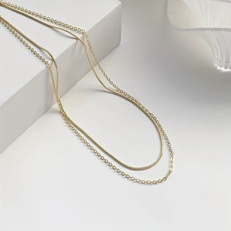 2 einzelne, filigrane Ketten die sich sanft um ihren Hals legen und eine harmonisch Symbiose bilden.