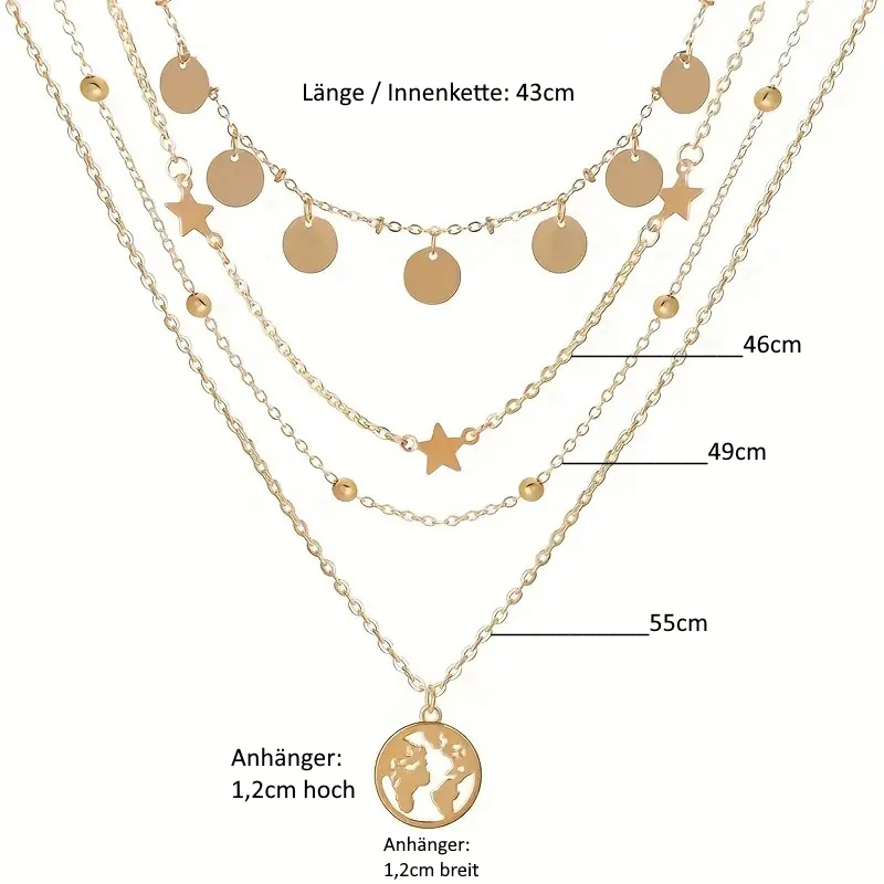 Ein chicker Anhänger verziert die längste Kette und bildet den Schluss dieser eindrucksvollen Symbiose.