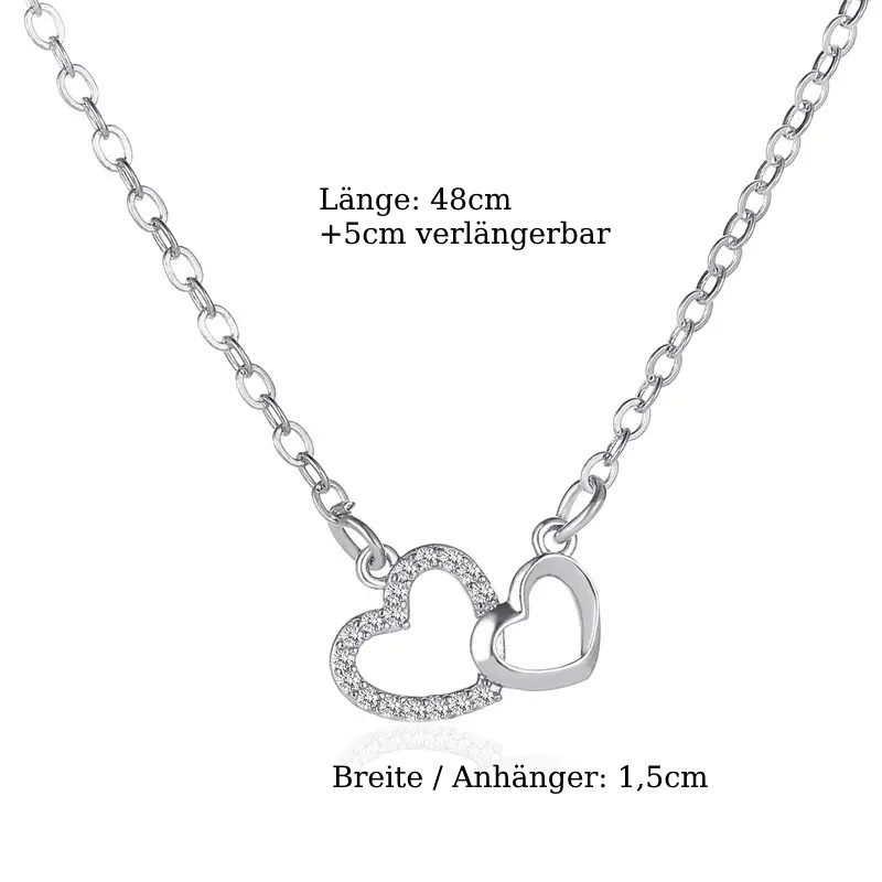 Eine bezaubernde, filigrane Kette mit einem süßen Anhänger mit 2 verbundenen Herzen. Schlichte Eleganz !