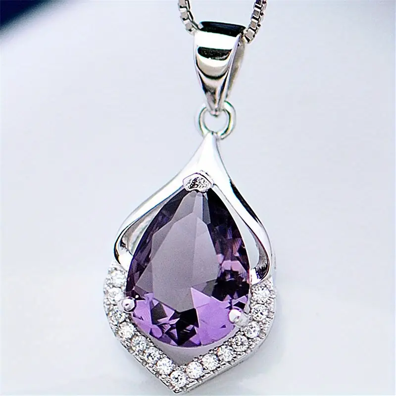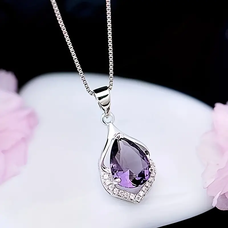 Das Licht bricht sich in dem großen violetten Schmuckstein und wird durch die anderen simulierten Brilliantsteine durch dessen Funkeln unterstützt.