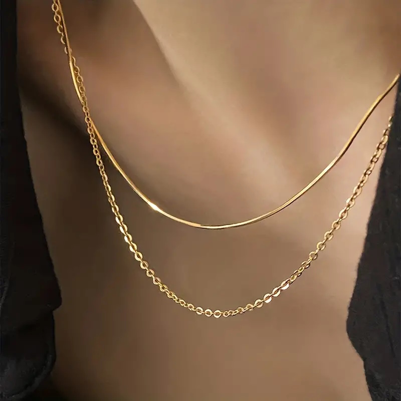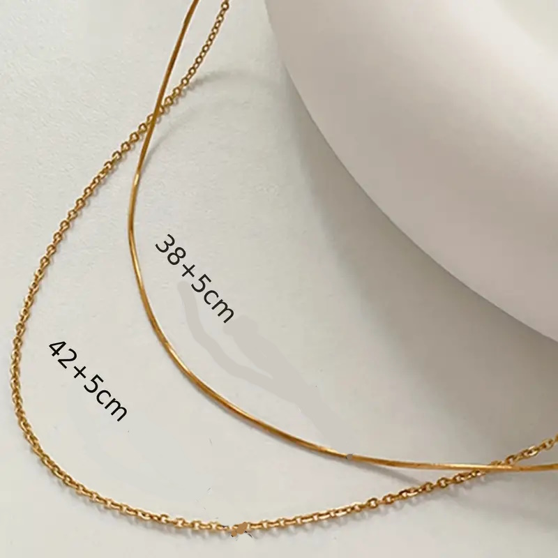 2 einzelne, filigrane Ketten die sich sanft um ihren Hals legen und eine harmonisch Symbiose bilden.