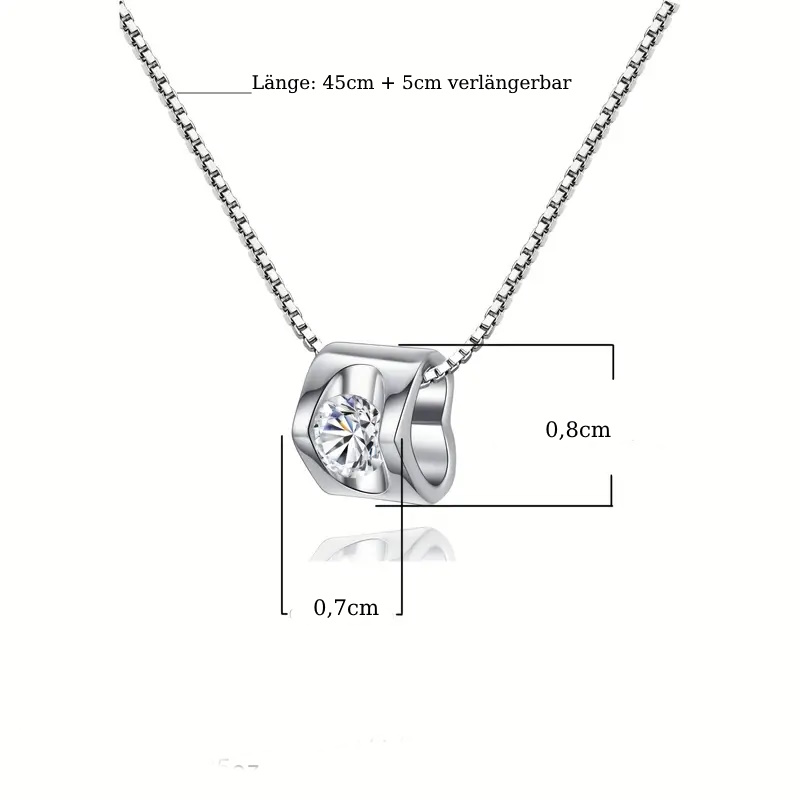 Ein edles Design trifft auf zeitlose Eleganz. Abgerundet durch die seitliche Herzform des Anhängers, gekrönt durch den mittig platzierten funkelnden Stein, der dem Anhänger die nötige Aufmerksamkeit und Brillianz verleiht.